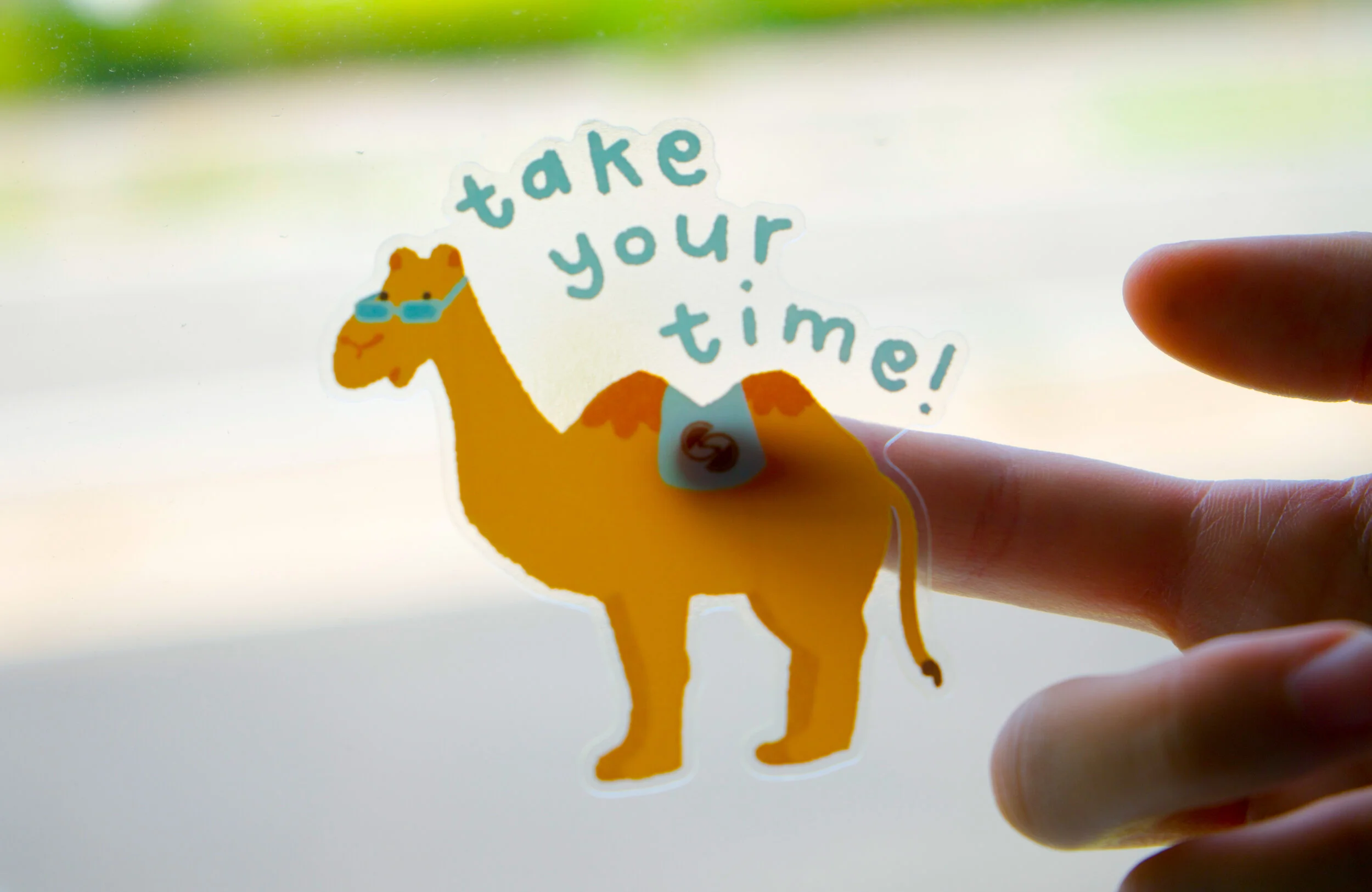 Join us in taking it slow and prioritizing quality over quantity. We hope our sticker reminds you that it's a-ok to take your time!
